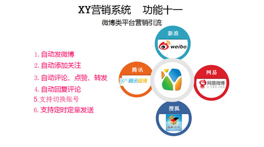 新浪微博、网易微博、搜狐微博、腾讯微博等。只要是微博类的平台,都能实现全自动营销引流。